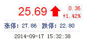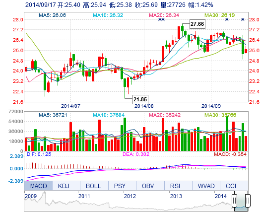 | 今 開: | 25.40 | 成交量: | 2.77萬手 | 振 幅: | 2.21% |