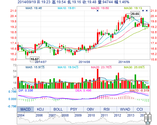 今開: 19.23 成交量: 9.47萬(wan) 手 振幅: 1.98% 最高: 19.54 成交額: 1.83億(yi) 元 換手率: 0.99% 最低: 19.16 總市值: 205.66億(yi) 市淨率: 5.58 昨收: 19.20 流通市值...