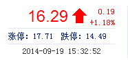 | 今 開: | 16.10 | 成交量: | 14.20萬手 | 振 幅: | 7.20% |
