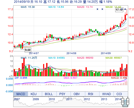 | 最 高: | 17.12 | 成交額: | 2.33億元 | 換手率: | 7.14% |