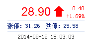 | 今 開: | 28.30 | 成交量: | 1.69萬手 | 振 幅: | 2.74% |