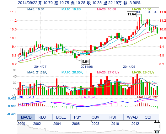 | 今 開: | 10.70 | 成交量: | 22.19萬手 | 振 幅: | 4.36% |