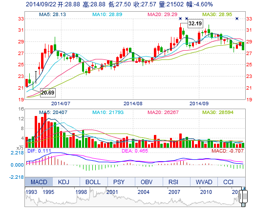 | 今 開: | 28.88 | 成交量: | 2.15萬手 | 振 幅: | 4.78% |