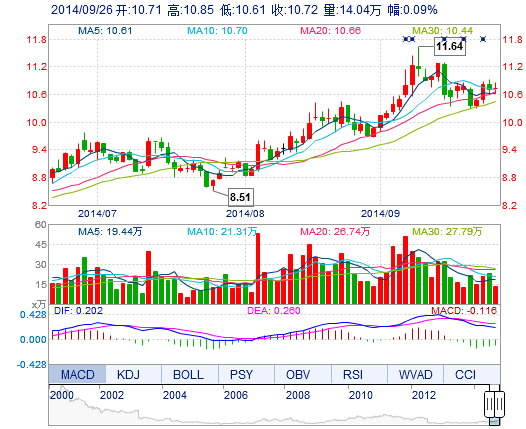 今開: 10.71 成交量: 14.04萬(wan) 手 振幅: 2.24% 最高: 10.85 成交額: 1.51億(yi) 元 換手率: 1.58% 最低: 10.61 總市值: 95.53億(yi) 市淨率: 3.53 昨收: 10.71 流通市值...