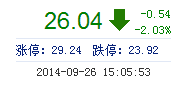 今開: 26.50 成交量: 5.10萬(wan) 手 振幅: 3.42% 最高: 26.60 成交額: 1.33億(yi) 元 換手率: 0.97% 最低: 25.69 總市值: 170.16億(yi) 市淨率: 9.36 昨收: 26.58 流通市值...
