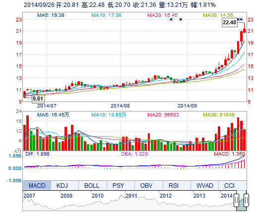 今開: 20.81 成交量: 13.21萬(wan) 手 振幅: 8.48% 最高: 22.48 成交額: 2.82億(yi) 元 換手率: 6.64% 最低: 20.70 總市值: 42.56億(yi) 市淨率: 8.52 昨收: 20.98 流通市值...