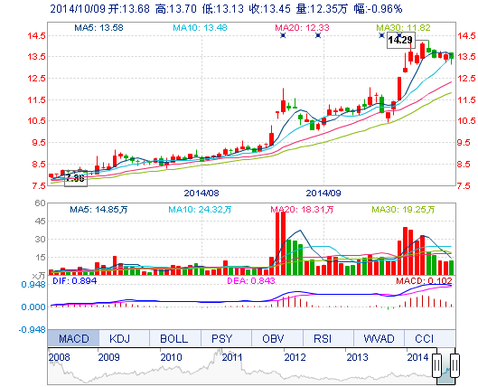 | 最 高: | 13.70 | 成交額: | 1.65億元 | 換手率: | 4.47% |