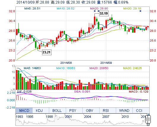 | 今 開: | 28.88 | 成交量: | 1.58萬手 | 振 幅: | 2.74% |