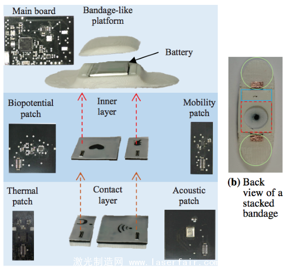 使用3D打印機製造智能繃帶的外殼,不僅(jin) 能夠針對每個(ge) 病人進行量身定製,而且減少了流通環節,確保幹淨,避免傳(chuan) 染。另外在,更換繃帶時,醫護人員也能很容易地將裏麵的傳(chuan) 感器取出換到新的外殼裏去。