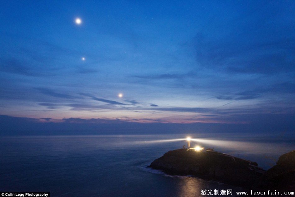 幾個(ge) 世紀以來,燈塔一直幫助確保海上水手們(men) 的安全,它照亮了狂暴的海麵,指示危險的礁石。這張照片拍攝於(yu) 英國威爾士西海岸附近,展示出這種傳(chuan) 統的美感。在這張圖像中,天空中從(cong) 左上到右下分別是金星,木星和月球。