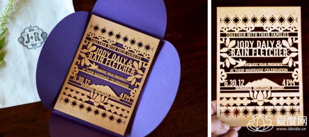 這是一款在薄木片上通過激光切割技術設計的請柬,它充分地體(ti) 現了婚禮的各個(ge) 要素哦!