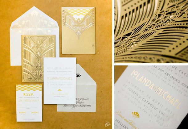 這款請柬的靈感來自於(yu) 《了不起的蓋茨比》,金色與(yu) 精致鏤空表現出裝飾藝術的奢華。
