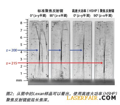 新的高速大功率(HSHP)聚焦反射鏡和標準FL 200mm拋物麵聚焦反射鏡隻有一個不同之處,即反射麵的設置有微小的變化,從而使得聚焦光斑變為橢圓形。整個過程不需要改造機器。隨著功率的增加,小的圓形聚焦光斑會使得焊縫缺陷報廢率升高,反之,隨著功率的增加而相應對稱性地拉長光斑,卻能保持低的廢品率(圖2)。