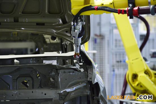 據上海通用工作人員介紹,油漆車間共采用塗膠機器人、噴塗機器人及各類開門開蓋機器人108台,自動化率達到85%。車雲菌獲悉,位於油漆車間的內部噴塗係統,在噴房中使用了4個機器人噴塗車身內部區域(門框及門蓋內表麵)替代手工噴塗,一方麵節約油漆材料,一方麵降低新風量,達到節能目的。