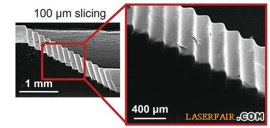 由於是連續的照射過程,因此3D打印的速度不再受到切片層數量的影響,而是僅僅取決於紫外線照射時的聚合速度以及聚合的粘性。而切片層厚決定了打印成品的表麵精度,由此打破了3D打印技術精度與速度不能同時提高的悖論。