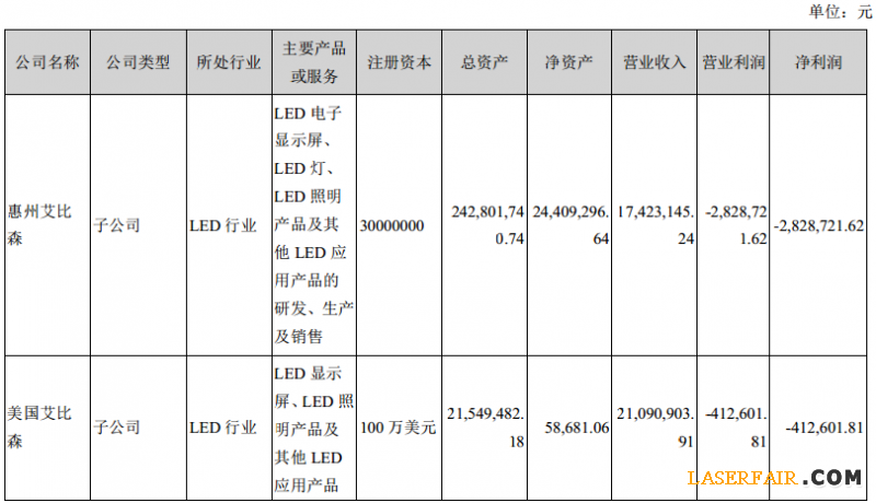 另外,公司分別公布了惠州子公司、美國子公司的業(ye) 績情況。其中,惠州艾比森2014年度實現營收1742.31萬(wan) 元,虧(kui) 損282.87萬(wan) 元;美國艾比森2014年度實現營收2109.09萬(wan) 元,虧(kui) 損41.26萬(wan) 元。