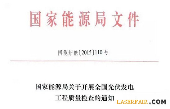 2015年4月7日,國家能源局向各省(自治區、直轄市)發展改革委(能源局)、新疆生產建設兵團發展改革委,各派出機構,國家電網公司、南方電網公司、內蒙古電力公司,水電水利規劃設計總院、鑒衡認證中心、中國質量認證中心、中國電力科學研究院下發——《國家能源局關於開展全國光伏發電工程質量檢查的通知》國能新能[2015]110號文件。