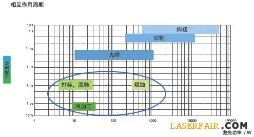 圖1:激光應用圖,激光與(yu) 材料相互作用周期以及相對的應用領域