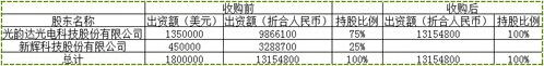 1、合約雙方:股權轉讓方:新輝科技有限公司;股權受讓方:深圳光韻達光電科技股份有限公司。