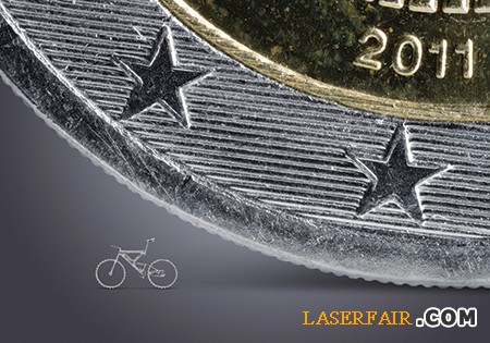 圖1 超短脈衝激光器製作的微自行車與站立的歐元硬幣大小的比較