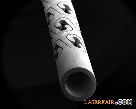 心血管支架的製造是一個明確證明,激光加工過程是從一個擠壓金屬管子切割出錯綜複雜的格子花紋。格子花紋可以支撐10μm寬度設計,通常包含了許多急彎處和柔性鉸鏈。常規激光加工會產生熱影響區(HAZ)和重塑金屬,後處理前必須完成最後拋光和支架的裝配。手動去毛刺和化學腐蝕是消除缺陷的常見方法,而這些需要為熟練工人和材料增加成本。