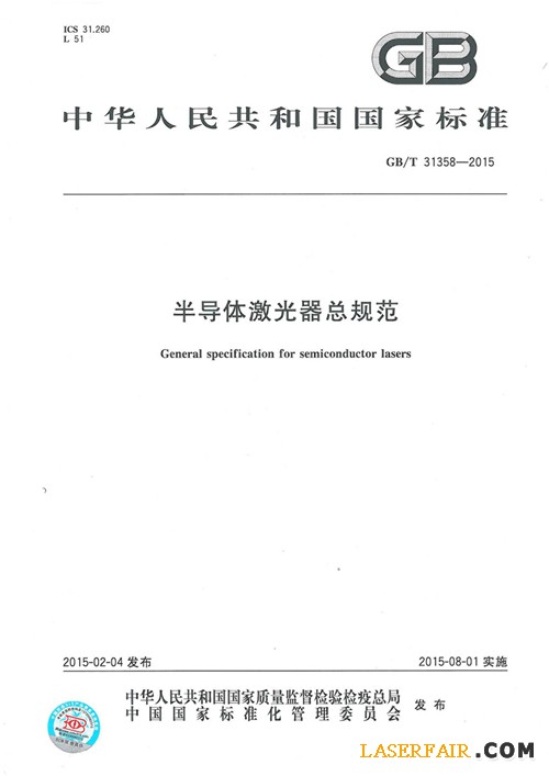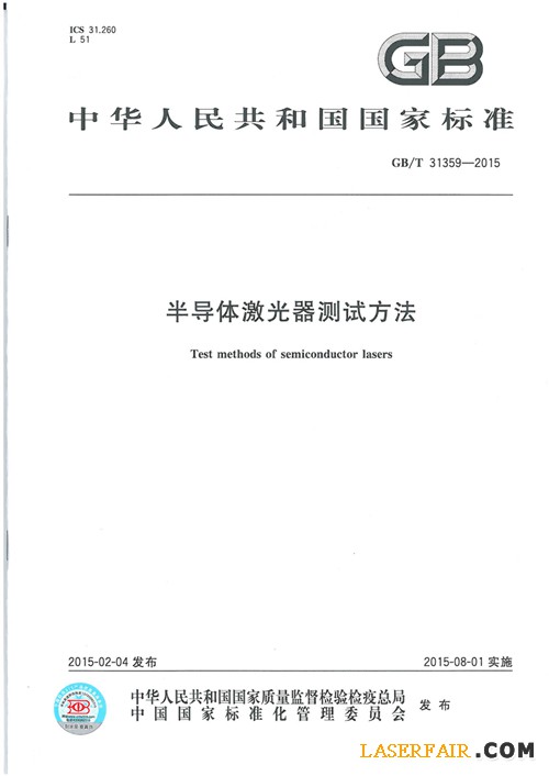 近日,由炬光科技主持編寫(xie) 的兩(liang) 項國家標準《半導體(ti) 激光器總規範》(標準號:GB/T 31358-2015)和《半導體(ti) 激光器測試方法》(標準