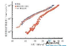 “十一五”期間,北京航空航天大學在飛機鈦合金大型整體主承力結構件激光快速成形工藝研究、工程化成套裝備研發與裝機應用關鍵技術攻關等方麵取得了突破性進展,提出了大型金屬構件激光直接成形過程“內應力離散控製”新方法,初步突破大型金屬構件激光快速成形過程零件翹曲變形與開裂“瓶頸難題”;突破激光快速成形鈦合金大型結構件內部缺陷和內部質量控製及其無損檢驗關鍵技術,飛機構件綜合力學性能達到或超過鈦合金模鍛件,例如,激光快速成形TA15鈦合金缺口疲勞極限超過鈦合金模鍛件32~53%、高溫持久壽命較模鍛件提高4倍(500℃/480MPa持久壽命由鍛件不足50h提高到激光成形件230h以上),特別是經後續特種熱處理新工藝獲得“特種雙態組織”(圖2所示)後,其綜合力學性能進一步顯著提高,疲勞力紋擴展速率降低一個數量級以上(圖3)。