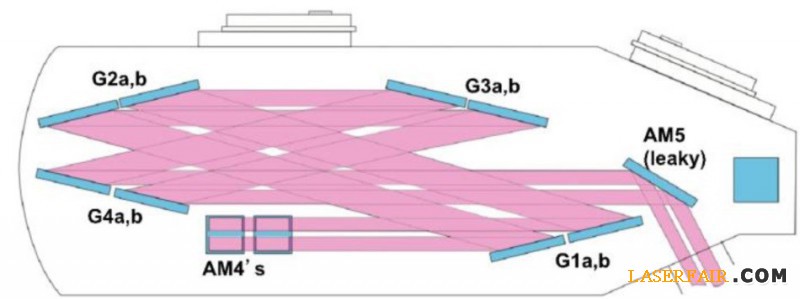 NIF主激光器和大口徑放大器基本不變,當一個2ns FWHM正啁啾展寬脈衝以半焦耳能量注入主激光放大器,在主激光輸出口產生3kJ能量,主激光器B積分小於1.8rad。該方案擁有最大的靈活性,靶室允許僅長脈衝打靶,或僅ARC打靶,或188路長脈衝與8束ARC子光束組合運行。
