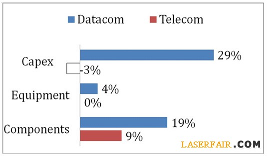 LC搜集的其他數據說明Q12015光收發器的銷售額超過整個光器件市場。電信收發器的銷售額在Q12015同比增長9%,FTTx模塊的大量需求是 動力。同期數通收發器的銷售額增長19%,受益於10GbEand40GbE模塊銷售額的穩步增長。大家期望100GbE收發器會在2015年底大量出 貨,因為很多供應商通過了客戶的測試。