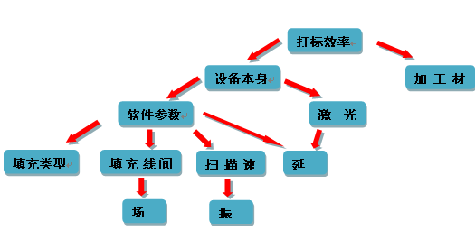 對於固定的標刻圖形,影響打標效率的因素可以分為設備本身和加工材料。從這兩大因素,可以細分到不同的方麵: