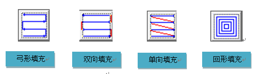弓形填充:打標效率最高,有時會出現銜接線、不均勻問題。打標細的的圖形、字體時,不會出現上述問題,所以弓形填充為首選。
