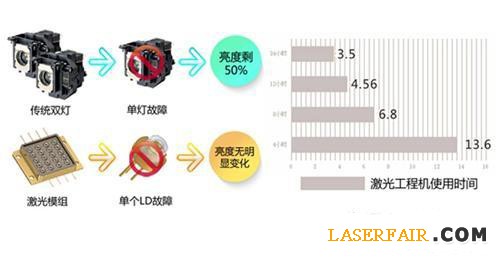 尤其是近年來逐漸趨熱的工程投影機市場,新光源則成為了眾廠商追捧的對象,如激光光源技術。它不僅易於提升亮度,而且非常適合高端工程投影機產品,使其綜合性價比遠高於傳統燈泡光源。