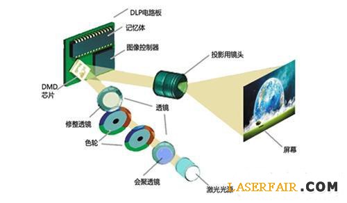 激光投影機的成像原理和技術與DLP、LCD或者SXRD的投影機產品是一樣的,也可以使用激光光源。