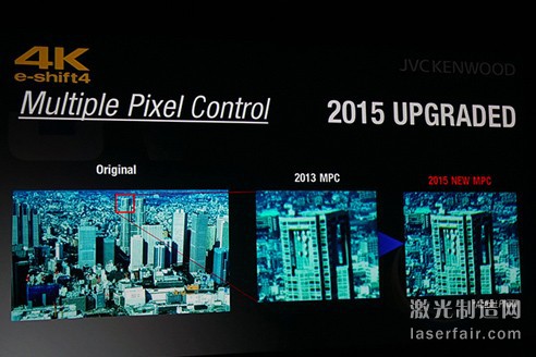 同樣,每年這個時候推出新品的JVC也如此推出了升級版機種,多達三款偽4K家用投影機新品,型號為DLA-X5000、DLA-X7000和DLA-X9000,而它們依舊采用的是1080P芯片。唯一不同的是,此次JVC為了提升畫質,同樣也加入了HDR技術,且現場為了讓專業人士以及觀眾看到提升後的效果,還專門演示前後對比。看著確實提升不了,究竟實際表現如何,隻有親自體驗才可知曉。