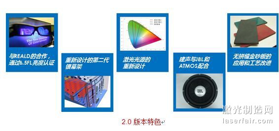 亮點四:把原有的固態激光升級到了現在的全半導體激光,使綠光光源也能夠采用半導體極光,在多模綠光基礎上的三基色激光光源的穩定性及對環境的耐受性,以及色彩的呈現都有了長足的進步。