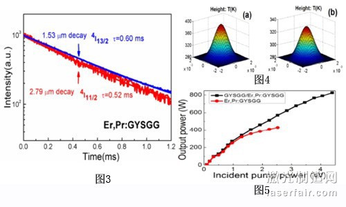 圖1 100 Mrad γ射線輻照前後Yb,Er,Ho:GYSGG的激光輸出功率曲線; 圖2 Cr,Er,Pr:GYSGG晶體在1~60Hz重複頻率下的激光特性曲線