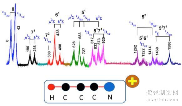 清華大學的研究者們最近使用一種叫做零動能光電子光譜的技術前所未有地獲得了丙炔腈陽離子的量子能級細節列表,丙炔腈是一種由五個原子組成的線性分子,具有原子核與電子的耦合效應,存在於星際星雲和土星最大的衛星土衛六的大氣層中。