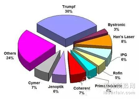 圖2:通快占據激光係統材料加工市場30%的銷售份額。