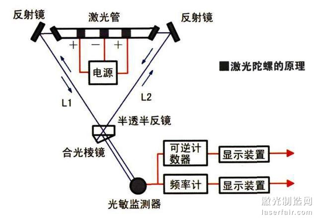 激光陀螺儀,顧名思義就是利用激光測方向變化的陀螺儀,其基本原理利用了光學中的塞格尼克理論,即在一個環形軌道裏,發射兩束方向相反的激光。在環形軌道沒有轉動的情況下,它將會用相同的時間導彈出發點並且具有相同的相位。