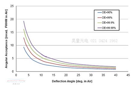 低陷波陷波濾光片的偏轉角與(yu) 衍射效率的關(guan) 係圖