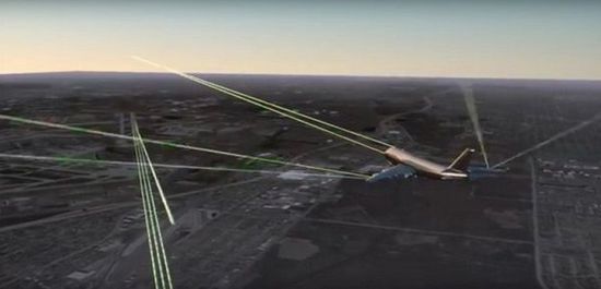 其中,係統的第一部分是安裝在機翼或機身部位的旋轉的半球型探測儀(yi) ,包括光探測和測距傳(chuan) 感器和接收器,並通過激光雷達的隱形脈衝(chong) 光束進行掃描,以確定幾英裏範圍內(nei) 潛在的危險。