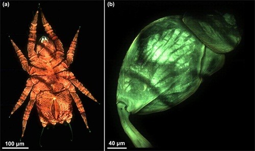 蟎蟲(a)和跳甲跳器(b)的彩色三維圖像