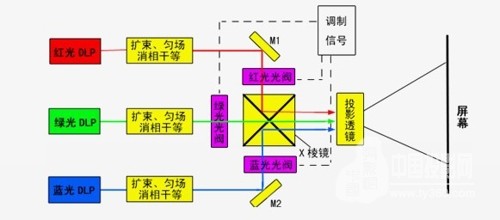 激光熒光粉顯示技術的應用,解決了激光顯示在成本、環保和用戶體驗的問題。不過,熒光粉激光投影機由於其光源性質,隻能用單片DLP來實現,由於單片性質無法應用於大屏市場。