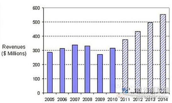 圖1 功率在1kW以下各種中紅外激光器的市場營業(ye) 收入