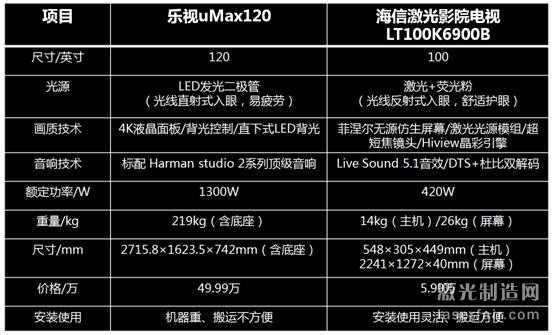 樂視120英寸液晶電視、海信100英寸激光影院電視,彩電市場已經正式向超大尺寸、家庭影院方向開戰。而液晶與激光顯示兩大技術的競爭也在彌漫著火藥味。