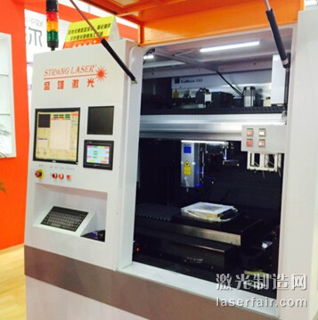 上圖為(wei) :盛雄激光展台,通快TruMicro 5000皮秒激光器搭配TOP Cleave光束整形鏡組,與(yu) 盛雄激光的集成設備Super-Dmirco 650強強聯手