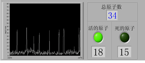 著名的“薛定諤貓”把微觀放射源所處的量子疊加態巧妙地與宏觀的貓聯係起來,形成了反直覺的既“死”又“活”的貓。而這種令人迷惑且吃驚的量子疊加態所引起的爭論至今還沒有平息,其中最著名當屬愛因斯坦的“上帝永遠不會擲骰子”。對於單個原子來說,實際情況到底如何,我們來看看實驗的結果如何。圖3顯示了我們用上麵的方法抓住一個單原子後,用拉曼光把原子製備到自旋向上和向下的疊加態,再探測原子處於自旋向上還是向下的狀態。如果把電子自旋向上定義為“活”的單原子,電子自旋向下定義為“死”的單原子,那麽我們可以看到在測量之前,永遠無法預測這次測量時原子的狀態是“死”還是“活”,這是一個量子隨機的結果。隨著測量次數的增多,“活”和“死”的原子數目比越來越接近1:1(因為我們製備的單原子疊加態波函數是),這樣探測到原子“活著”和“死了”的概率各一半。
