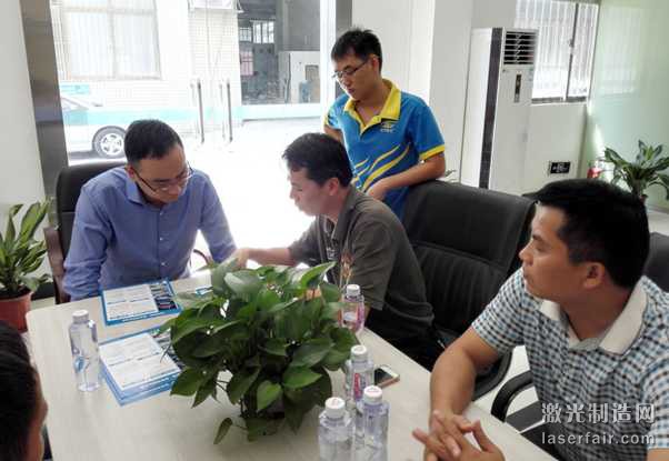 2015年7月初,廣東(dong) 省機械技師學院劉新林副院長率李淑寶主任一行親(qin) 赴創可激光在徐強總經理的陪同下進行調研、參觀。