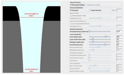 傳統的模擬程序在激光光束及材料的人機交互中會涉及到一些複數項的表示。而對於用戶來說,他們並不關心這些數學參數,用戶感興趣的事情是當激光束焦點位置或者光斑直徑變化時鑽孔要如何變化。