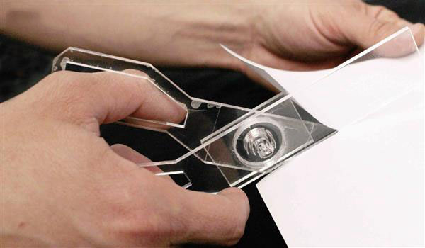 那麽(me) ,它是如何工作的呢?嗯,用戶隻需將一堆亞(ya) 克力板放進切割機裏。“在加工過程中,LaserStacker通過切割每一層來成型,並通過熔融其接觸麵處的材料將各層焊結在一起,並在更高的層數上修複不需要的切割。當用戶從(cong) 激光切割機中拿出對象時,它已經組裝好了。”Udayan Umapathi解釋說。下圖以製作一把剪刀為(wei) 例,展示了這個(ge) 相當簡單而巧妙地過程。